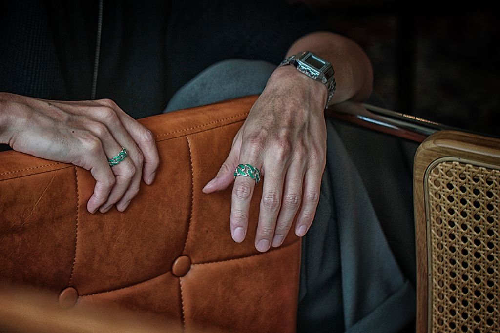 This ring masterfully combines the brand's unique Hiota chiseling technique with vibrant enamel craftsmanship, elevating the classic Cuban chain design to a new level. The bold yet refined appearance of the ring showcases a harmonious interplay between the rich colors of enamel and the intricate patterns of Hiota chiseling, exuding a distinct sense of personality and style. Whether for formal occasions or daily wear, this ring adds a touch of brilliance to your ensemble, representing the perfect blend of tradition and innovation.